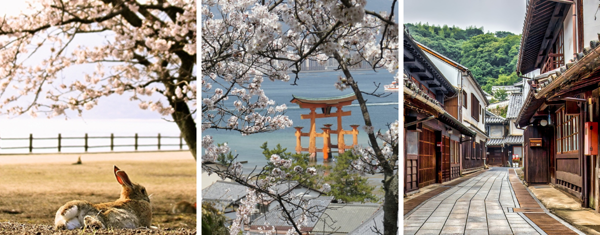 接著前往秒回江戶時代安藝小京都的竹原歷史街道,來去兔子島看看櫻花樹下的可愛兔子。