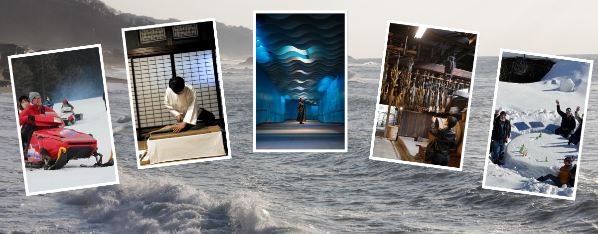 乘坐雪地摩托車帶你進入一個雪更深的世界~高根村地區擁有日本的原始風景,並以梯田種植的美味稻米而聞名。精心烹調的引以為傲的梯田米以及使用當地蔬菜製成的泡菜等,能盡情享受只有在這裡才能品嚐到的精緻菜餚。包含「鄉村村上的特別晚餐」,食材使用村上鮭魚、當地食用的手工泡菜作為醃製食品以及來自日本海的魚呦~